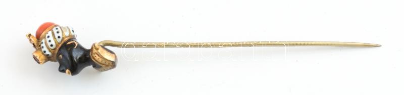 Leírás: Régi szerecsen fejes kalaptű, eredeti dobozában, h: 8 cm