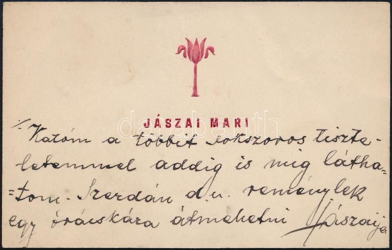 https://www.darabanth.com/hu/376-Gyorsarveres/376.0/Mutargy-papirregiseg-egyeb/Tortenelmi-dokumentumok-keziratok-erdekessegek~500018/cca-1900-Jaszai-Mari-1850-1926-szineszno-sajat-kezzel-irt-sorai-nevjegykartyajan-Kedves~II2192994