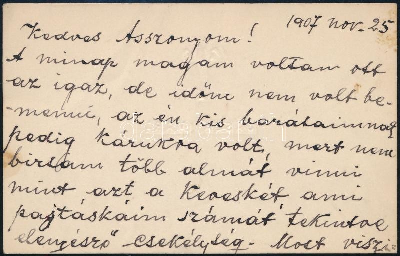 cca 1900 Jászai Mari (1850-1926) szÃnésznÅ‘ saját kézzel Ãrt sorai névjegykártyáján Kedves Asszonyom! megszólÃtással, valószÃnűleg Hermann Leontinnak, GerÅ‘ Ödön művészeti újságÃró, szerkesztÅ‘ feleségének, melyben arról Ãr, hogy nem tudott elég almát vinni a gyerekeknek, de cselédje pótolni fogja
