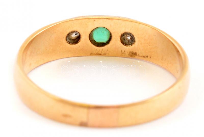 Leírás: Arany 14K gyűrű smaragddal és brillel. Jelzett, 4,32 g
