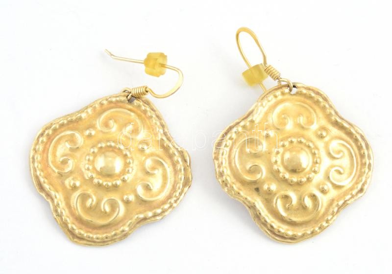 Leírás: Aranyozott ezüst(Ag) fülbevalópár, jelzett, 3×3 cm, nettó: 6,4 g
