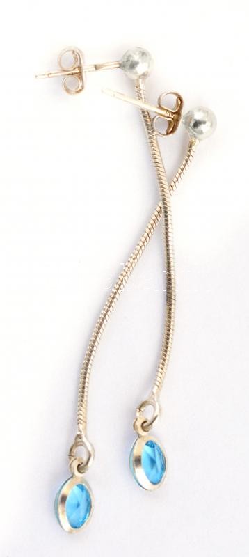Leírás: Ezüst(Ag) fülbevalópár, halványkék kővel, jelzett, h: 5,5 cm, bruttó: 1,87 g