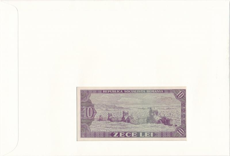 Romania 1966. 10 Lei in envelope with stamp and cancellation C:UNC