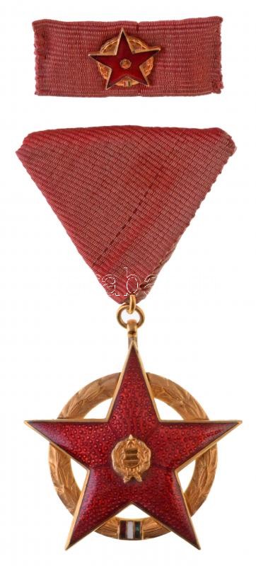 Hungary 1957. "Order of The Red Star" gilt, enamelled Br decoration on ribbon, with service ribbon C:UNC