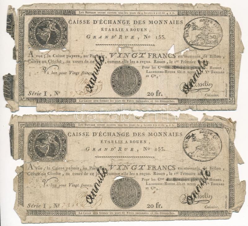 Leírás: Franciaország / Rouen 1797-1803. 20Fr "annulé (érvénytelen)" felülbélyegzéssel (2x) T:IV