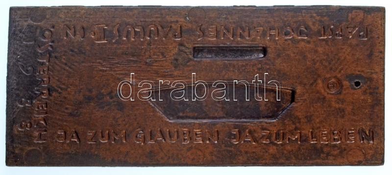 Ausztria 1988. "II. János Pál pápa Ausztriában / Igen a hitre, igen az életre" Br plakett, hátoldalán lyuk a függesztéshez. Szign.: EH (73x164mm) T:2 Austria 1988. "Papst Johannes Paulus II in Österreich - Ja zum glauben ja zum leben" Br plaque with hole for hanging on backside. Sign.: EH (73x164mm) C:XF