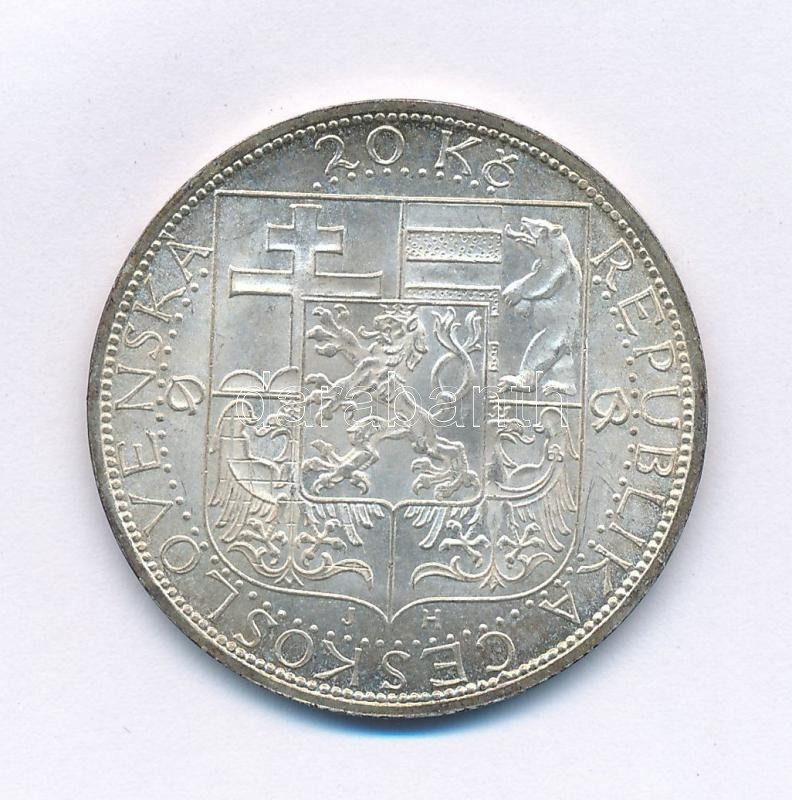 Leírás: Csehszlovákia 1937. 20K Ag "Masaryk köztársasági elnök halála" T:1-