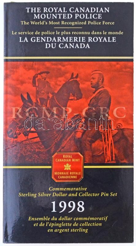 Canada 1998. 1 Dollar Ag "120th Anniversary Royal Canadian Mounted Police" Ag commemorative issue (25,175g/0.925) + miniature Ag pin (2,40g/0.925) on cardboard display shett C:UNC