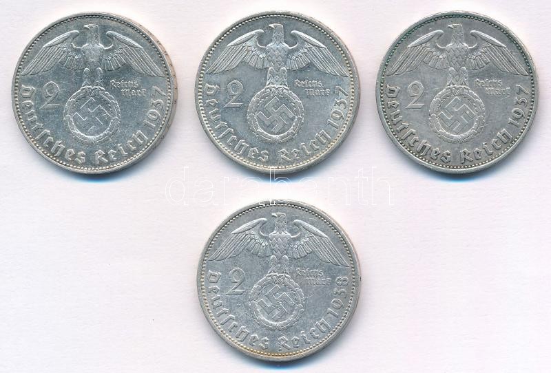 German Third Empire 1937-1938. 2 Reichsmark Ag "Hindenburg" (4pcs, 3xdiff, within 1937J) C:XF,VF