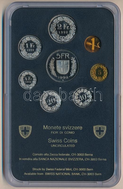 Switzer... https://www.darabanth.com/hu/376-Gyorsarveres/376.0/Numizmatika/Kulfoldi-fem-es-ezustpenzek~2000014/Svajc-1992B-1r-5Fr-8xklf-forgalmi-szett-muanyag-tokban-T1--Switzerland-1992B-1-Rappen-5-Fran~II2206244