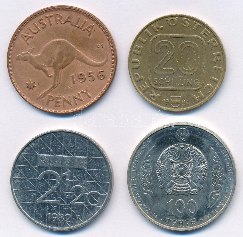 Mixed: Australia 1956. 1 Penny Br "Elizabeth II" + Austria 20 Schilling Al-Ni-Br "Castle Grafenegg" + Netherlands 1982. 2 1/2 Gulden Ni "Beatrix" + Kazakhstan 100 Tenge Cu-Ni "Abulkhair Khan" C:XF