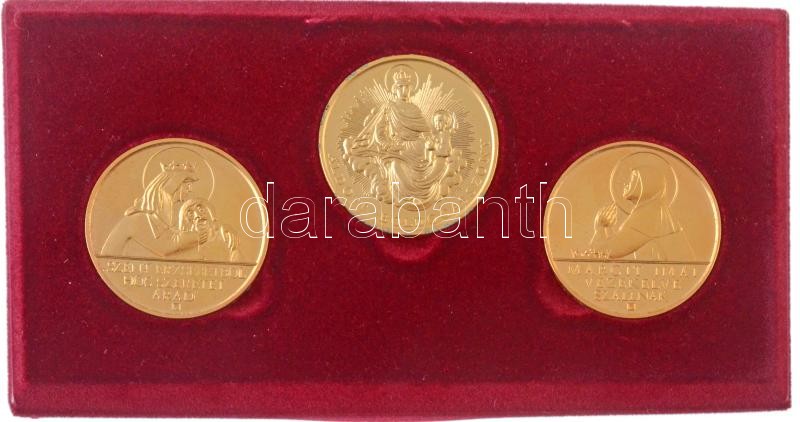 Fülöp Zoltán (1951-) 1994. "Magyar Szentek II. - Szent Erzsébet, Nagyboldogasszony, Szent Margit" aranyozott tombak emlékérem (3xklf), eredeti dísztokban, sorszámozott tanúsítvánnyal (40mm) T:2 (PP) oxidáció