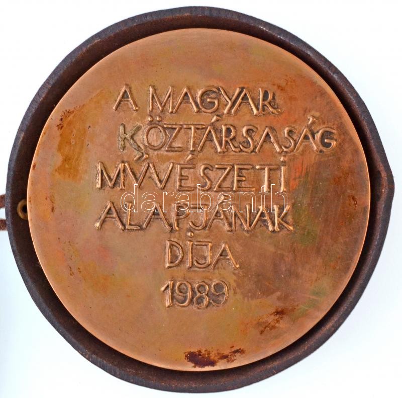 Leírás: Kiss Sándor (1925-1999) 1989. "A Magyar Köztársaság Művészeti Alapjának díja 1989" Br emlékplakett bőr dísztokban (117mm) T:1