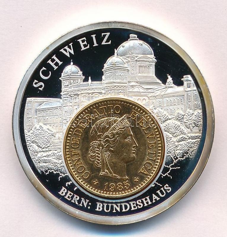 Leírás: DN "Európai pénznemek / Svájc - Parlament, Bern" ezüstözött, részben aranyozott fém emlékérem (35mm) T:PP kis patina
