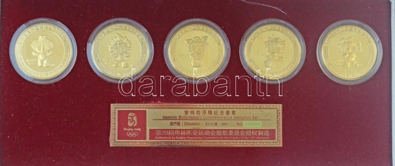 Leírás: Kína 2008. "Pekingi Olimpia 2008. kabala sorozat" aranyozott Br emlékérem (5xklf), eredeti dísztokban, sorszámozott tanúsítvánnyal (40mm) T:PP