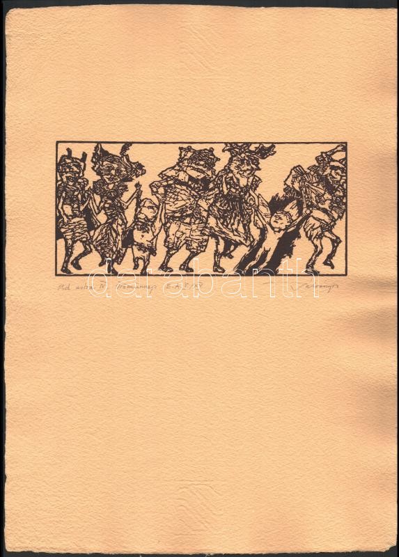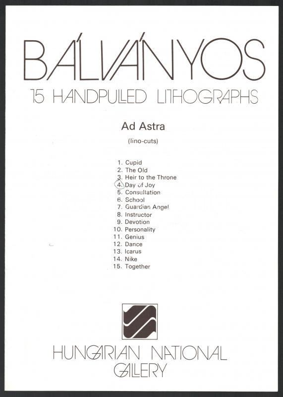 Leírás: 1984 Bálványos Huba (1938-2011): Ad Astra IV. Örömünnep, linómetszet, jelzett, sorszámozott művészpéldány EA II/XV. 10x22 cm.