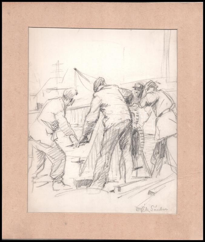 Ék Sándor (1902-1975): Munkások. Szén, papír. Jelzett, 25x20 cm https://www.darabanth.com/hu/377-Gyorsarveres/377.0/Festmenyek-es-grafikak/Festmenyek-es-grafikak~1/Ek-Sandor-1902-1975-Munkasok-Szen-papir-Jelzett-25x20-cm~II2186155