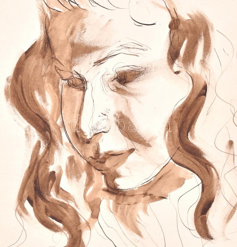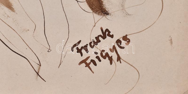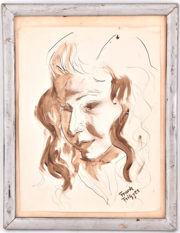 Leírás: Frank jelzéssel: Merengő. Lavírozott tus, papír, kartonra kasírozva, lap teteje sérült. Sérült fa keretben 29x22,5 cm