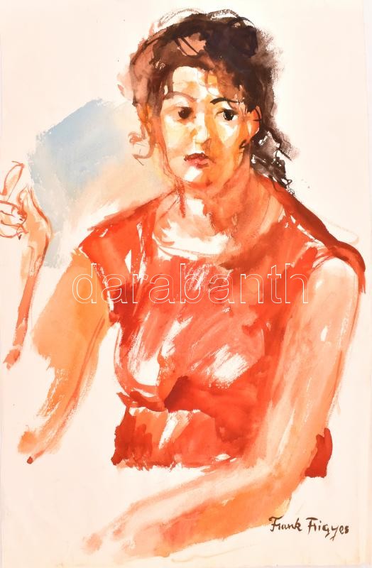 Frank jelzéssel: Női portré (tanulmány). Akvarell, papír. 48×31,5 cm https://www.darabanth.com/hu/377-Gyorsarveres/377.0/Festmenyek-es-grafikak/Festmenyek-es-grafikak~1/Frank-jelzessel-Noi-portre-tanulmany-Akvarell-papir-48C39731-5-cm~II2196748