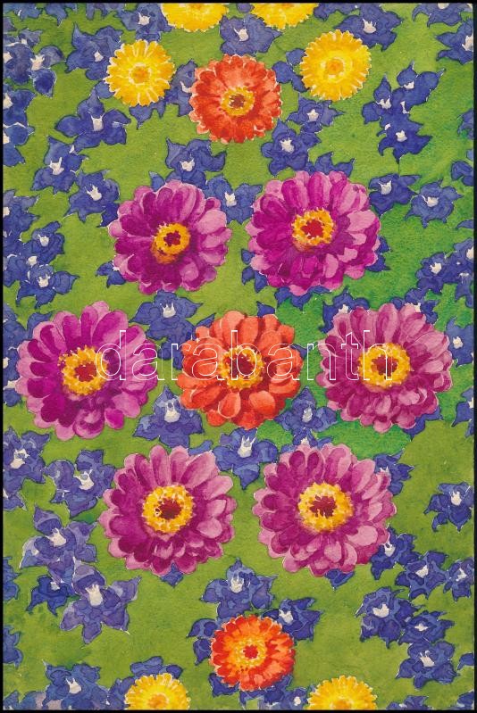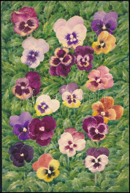 Leírás: Jelzés nélkül, 3 db mű: Virágok. Akvarell, papír, 15,5x25 cm