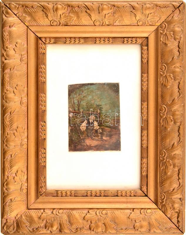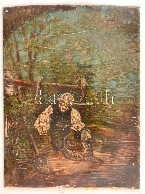 Leírás: Jelzés nélkül: Pihenő férfi.Olaj, papír, üvegezett keretben, 8,5×6 cm