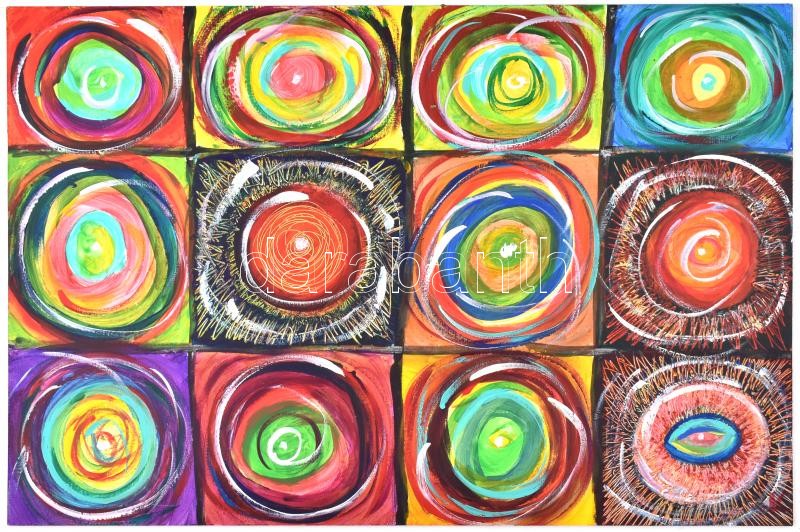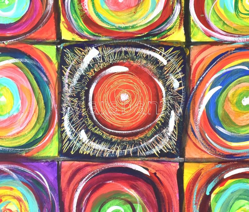 Kozár Edit (1976-): Mágikus ördögszekerek. Akril, farost, jelzett, hát... https://www.darabanth.com/hu/377-Gyorsarveres/377.0/Festmenyek-es-grafikak/Festmenyek-es-grafikak~1/Kozar-Edit-1976-Magikus-ordogszekerek-Akril-farost-jelzett-hatoldalan-autograf-felira~II2199814