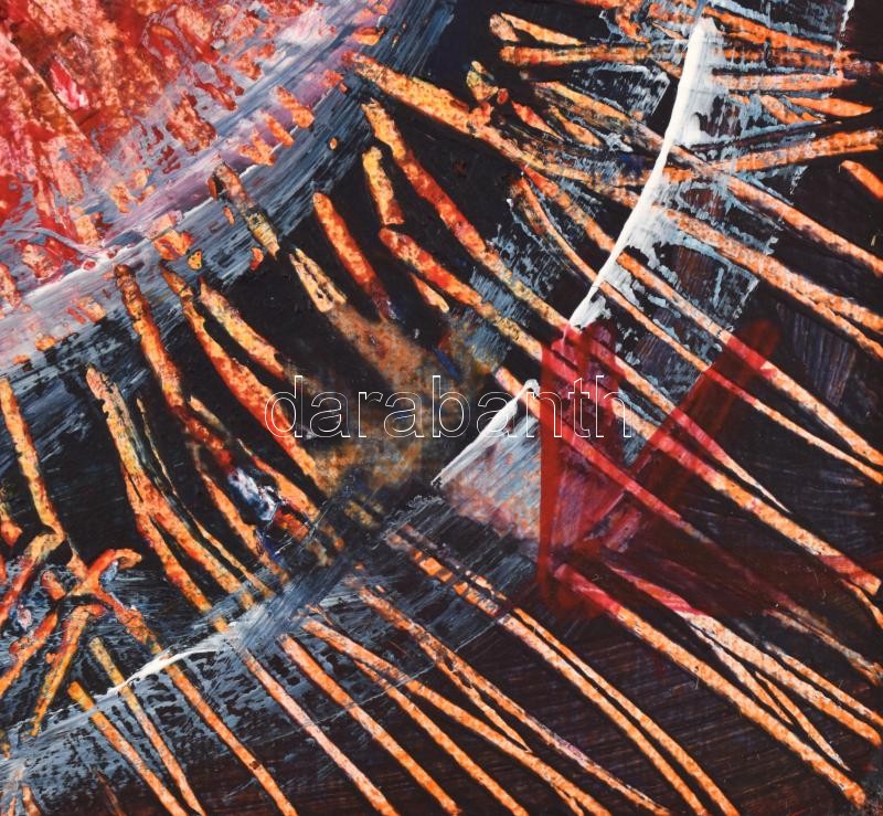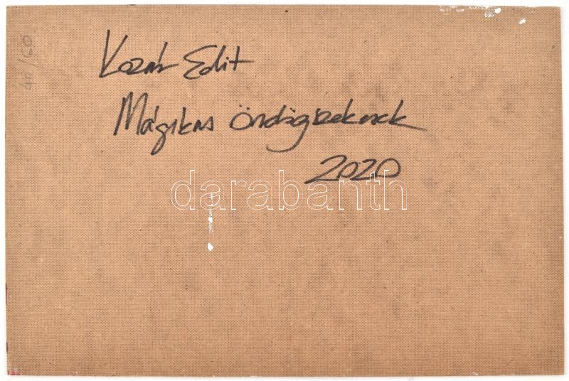 Leírás: Kozár Edit (1976-): Mágikus ördögszekerek. Akril, farost, jelzett, hátoldalán autográf felirattal, 60x40 cm