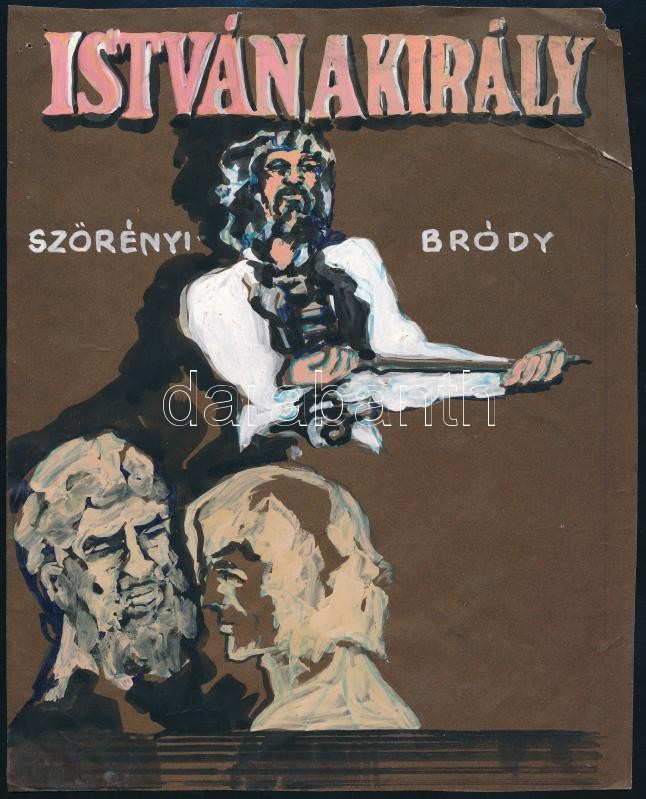 Leírás: Lengyel Sándor (1930-1988): István, a király, plakátterv, vegyes technika, papír, jelzés nélkül, szélén kis szakadás, 25x20 cm