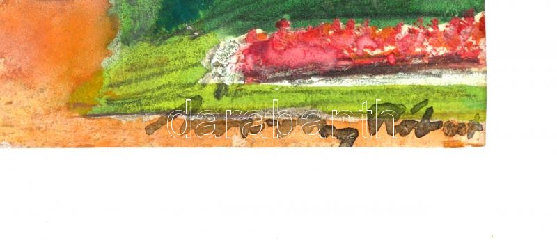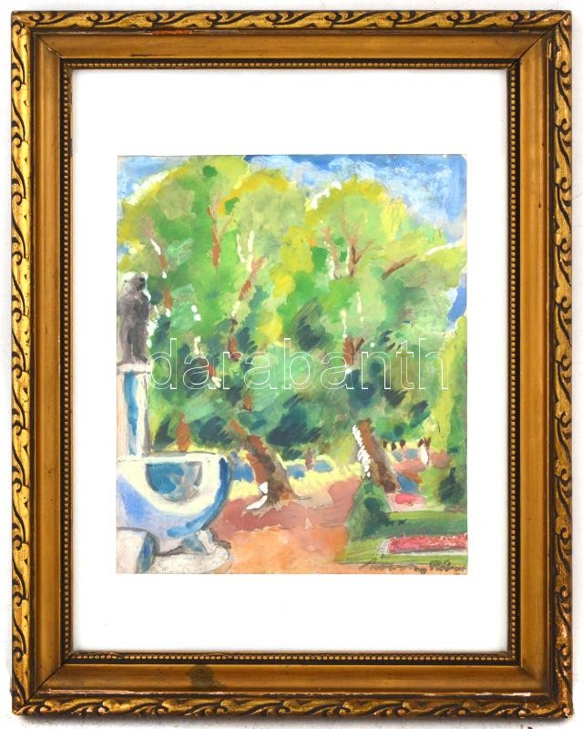 Leírás: Novotny Emil Róbert (1898-1975): Kert. Akvarell, papír, jelzett. Üvegezett, kissé sérült fa keretben, 18×14 cm