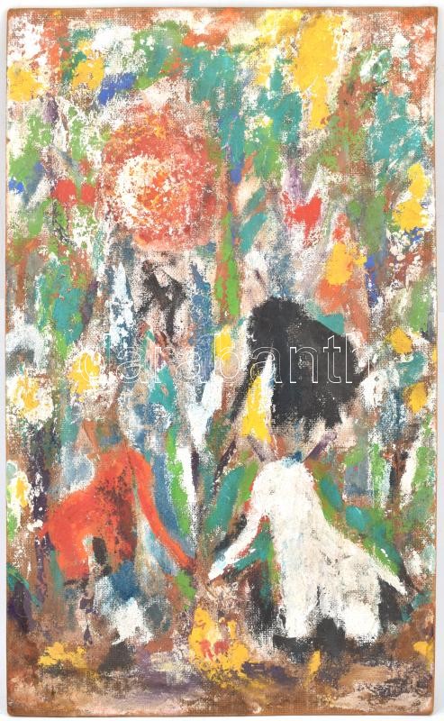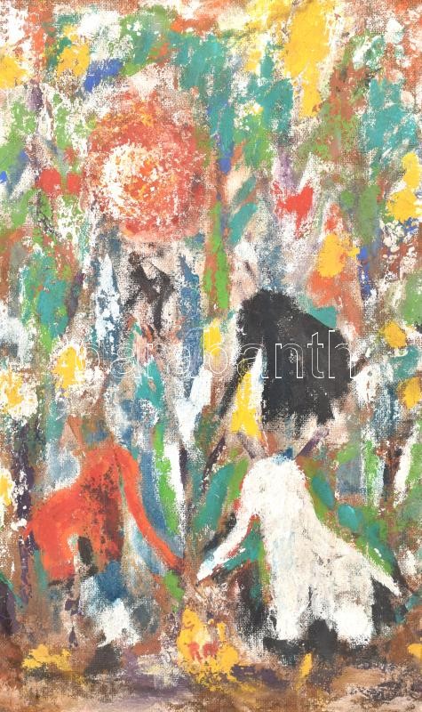 Leírás: Roth Miklós (?-): Elefántok. Olaj, karton, 70×43 cm