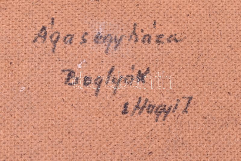 Leírás: Siklódi Hegyi István (1917- ): Boglyák, Ágasegyháza. Olaj, farost, kissé sérült. Jelzett, hátoldalán is jelzett és autográf felirattal. 45x34,5 cm