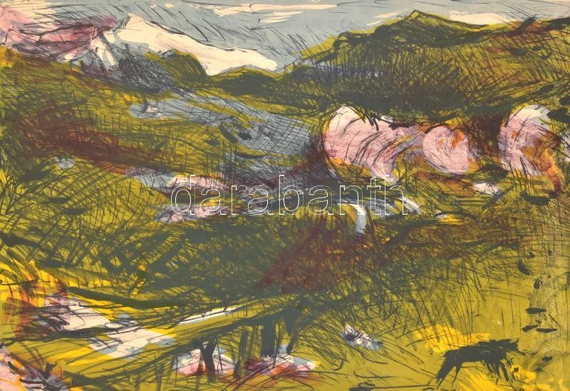 Vilhelm (Wilhelm) Károly (1943-2011): Nagy tiroli táj. Színes litográfia, papír, jelzett, számozott (5/25), lap bal felső sarka sérült, keretben, 68,5×98 cm