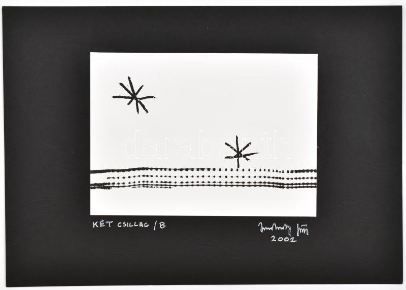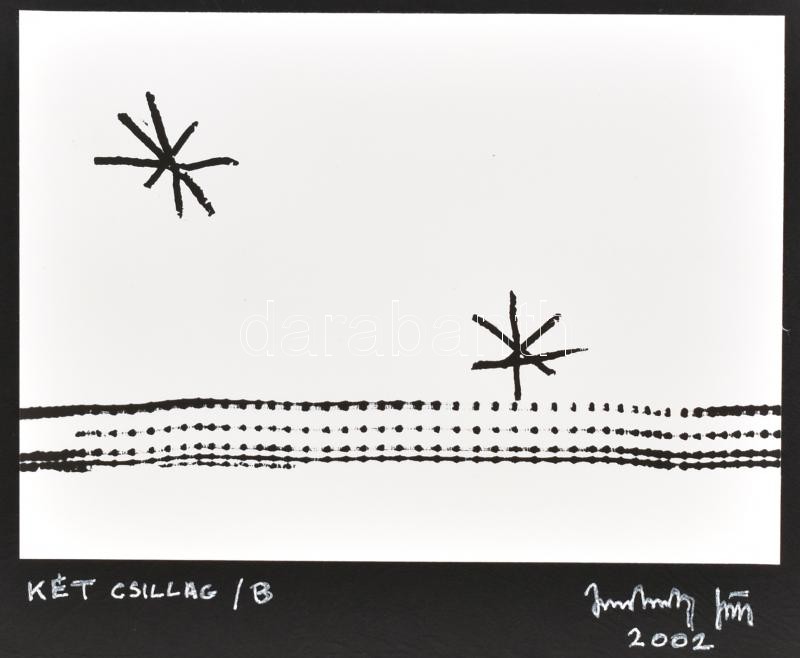 Leírás: 2002 Jankovszky György(1946-): Két csillag, fotógrafika, feliratozva, aláírt, pecséttel jelzett, kartonra kasírozva, 12×18 cm