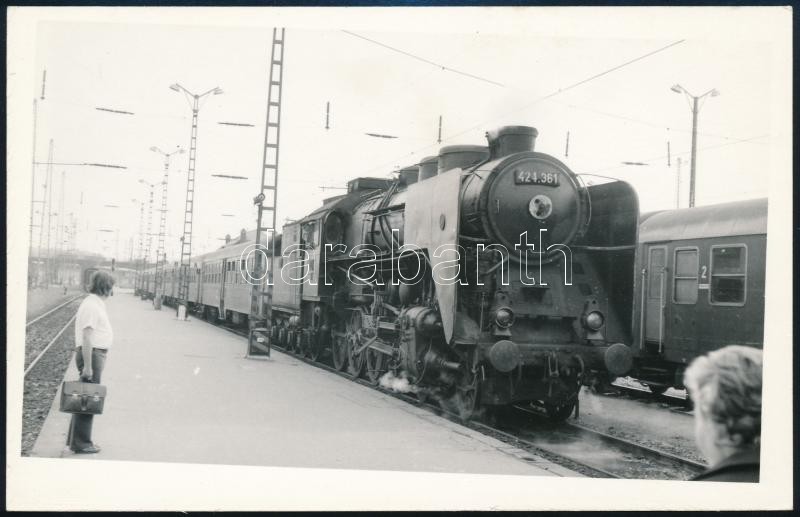 Leírás: 424.361-es mozdony a Nyugati Pályaudvaron, hátoldalon feliratozott fotó, 9×14 cm