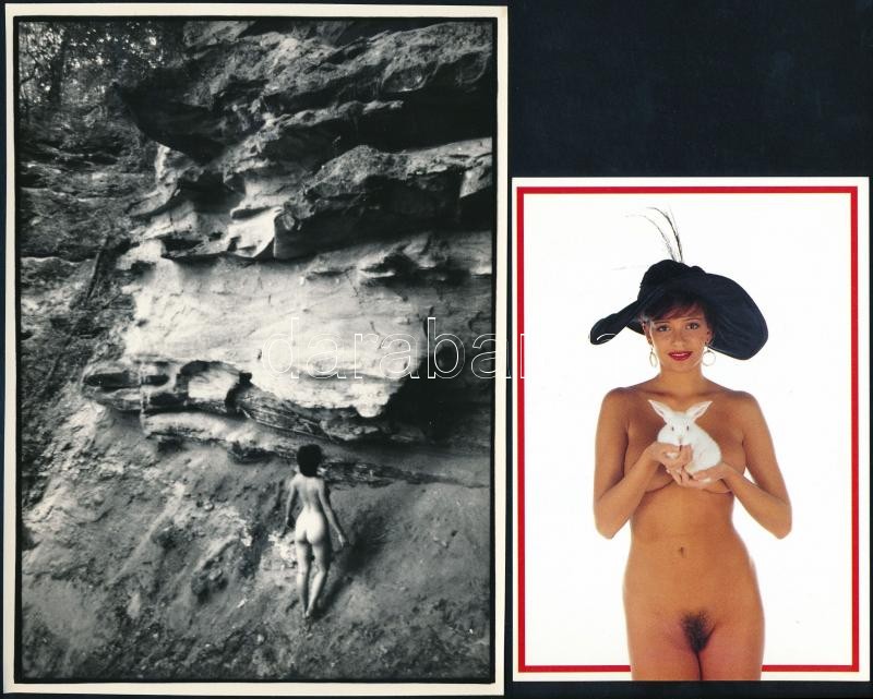 Leírás: cca 1979 Kotnyek István: Sziklás akt, feliratozott vintage fotóművészeti alkotás + hozzáadva 1 db szolidan erotikus képeslapot, 20x15 cm