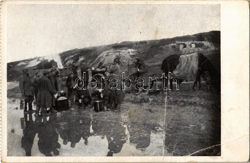 Das Korps Hofmann für die Invaliden, Witwen und Waisen sowie für den Karpathendenkmal-Fonds. Korps Hofmann Feldpost 380. / A rokkantak, az özvegyek és árvák, valamint a kárpáti emlékszobor alap javára - a Hofmann hadtest segélylapja / WWI K.u.K. Korps Hofmann Feldpost 380. military charity fund, supply train, soldiers dishwashing - képeslapfüzetből / from postcard booklet (fa)