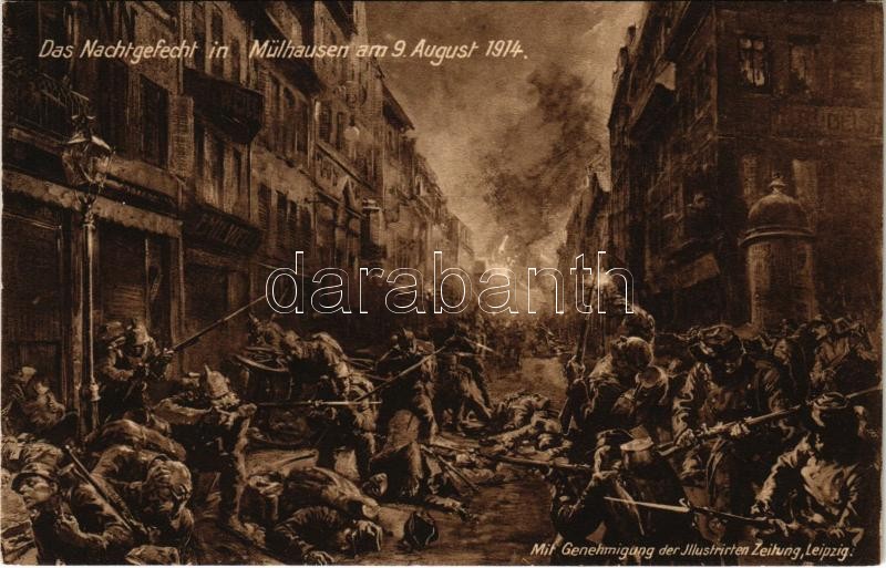 Das Nachtgefecht in Mühlhausen am 9. August 1914. / WWI German militar... https://www.darabanth.com/hu/377-Gyorsarveres/377.0/Kepeslapok/Katonai~2000082/Das-Nachtgefecht-in-Muhlhausen-am-9-August-1914-WWI-German-military-night-attack-in-Muhlhause~II2167121