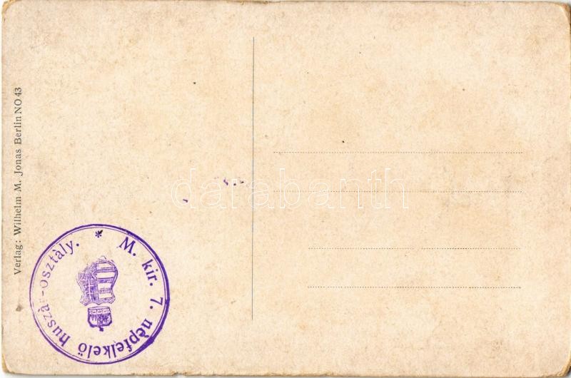 Lieb Vaterland magst ruhig sein. General Feldmarschall Graf Häserel, General Conrad von Hötzendorf / WWI German and Austro-Hungarian K.u.K. military, Viribus Unitis propaganda, airship, military aircraft, soldiers, coat of arms + "M. kir. 7. népfelkelő huszár-osztály" (EK)