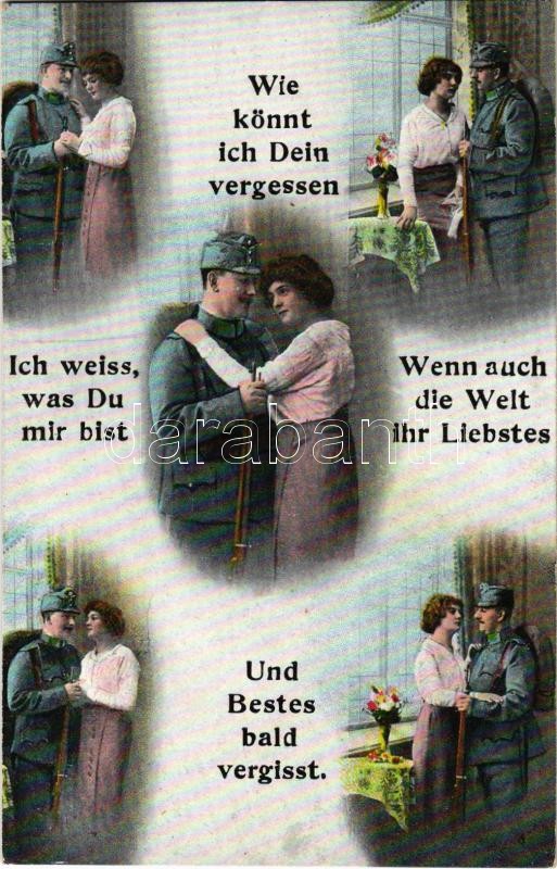 Wie könnt ich Dein vergessen / WWI Austro-Hungarian K.u.K. military, r... https://www.darabanth.com/hu/377-Gyorsarveres/377.0/Kepeslapok/Katonai~2000082/Wie-konnt-ich-Dein-vergessen-WWI-Austro-Hungarian-KuK-military-romantic-couple-soldiers-far~II2167076