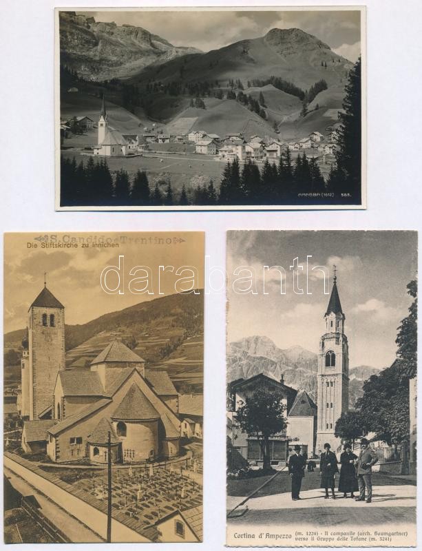 7 db RÉGI dél-tiroli és olasz városképes lap / 7 pre-1945 South Tyrolean (Südtirol) and Italian town-view postcards: Arabba, Pieve di Livinallongo, Cortina d'Ampezzo, Cadipietra, San Candido