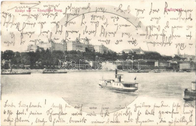 1906 Budapest I. Királyi vár, gőzhajó. D.K. Bp. 638. sz. (EK) https://www.darabanth.com/hu/377-Gyorsarveres/377.0/Kepeslapok/Magyarorszag~2000006/1906-Budapest-I-Kiralyi-var-gozhajo-DK-Bp-638-sz-EK~II2103511
