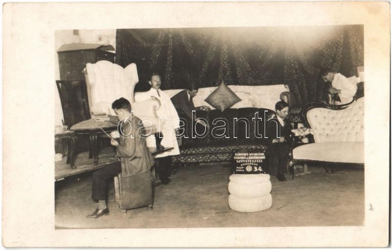 Leírás: Budapest VIII. Kárpitos Munkások Termelő és Értékesítő Szövetkezete, kárpitos munkák. Nap utca 34. (fl)