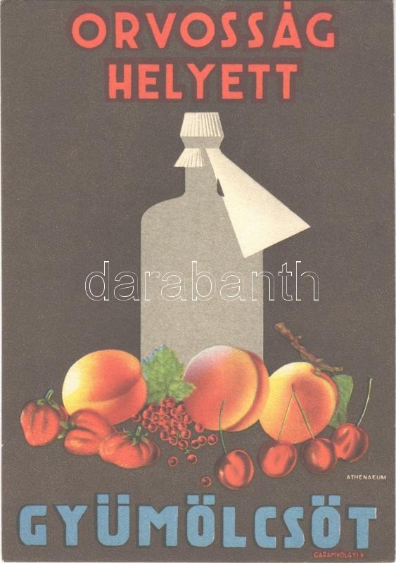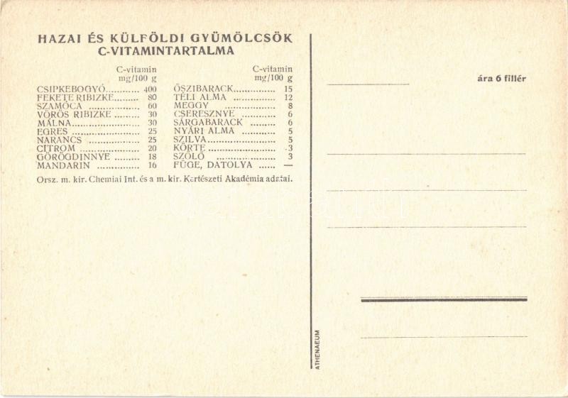 Orvosság helyett gyümölcsöt! Magyar egészségügyi propaganda, C-vitamin táblázat a hátoldalon / Hungarian health campaign propaganda, Vitamin C chart s: Garamvölgyi K.