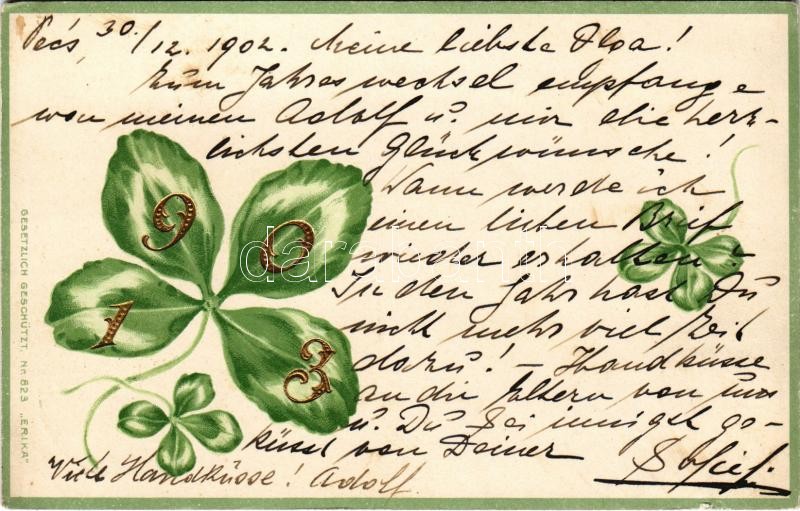 Leírás: 1903 New Year greeting. Erika Nr. 523. litho
