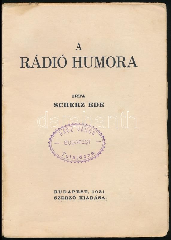 Scherz Ede: A rádió humora. Bp., 1931, Szerzői. Kiadói papírkötésben, ... https://www.darabanth.com/hu/377-Gyorsarveres/377.0/Konyvek/Konyvek-Egyeb-ritkasagok~500019/Scherz-Ede-A-radio-humora-Bp-1931-Szerzoi-Kiadoi-papirkotesben-szetvalt-kotessel-~II2221668