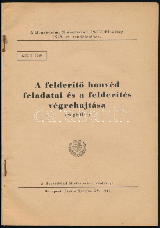 A felderítő honvéd feladatai és a felderítés végrehajtása. (Segédlet.)... https://www.darabanth.com/hu/377-Gyorsarveres/377.0/Konyvek/Konyvek-Militaria-Katonasag~500005/A-felderito-honved-feladatai-es-a-felderites-vegrehajtasa-Segedlet-Bp-1949-Honvedel~II2218697