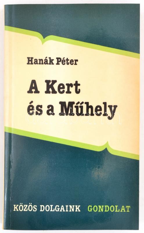 Hanák Péter: A kert és a műhely. Közös Dolgaink. Bp., 1988., Gondolat. Kiadói papírkötés. A szerző, Hanák Péter (1921-1997) történész, művelődéstörténész, egyetemi tanár, MTA-tag által Dienes István (1929-1995) régész, muzeológus részére dedikált, dátumozott (1988. június.) példány