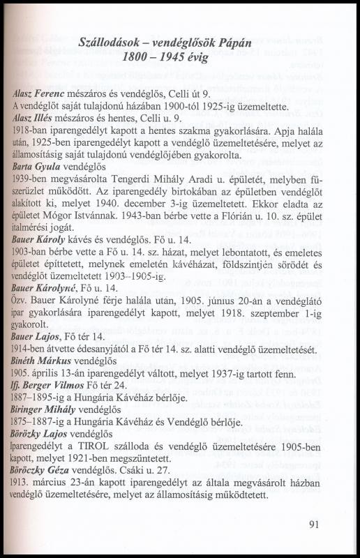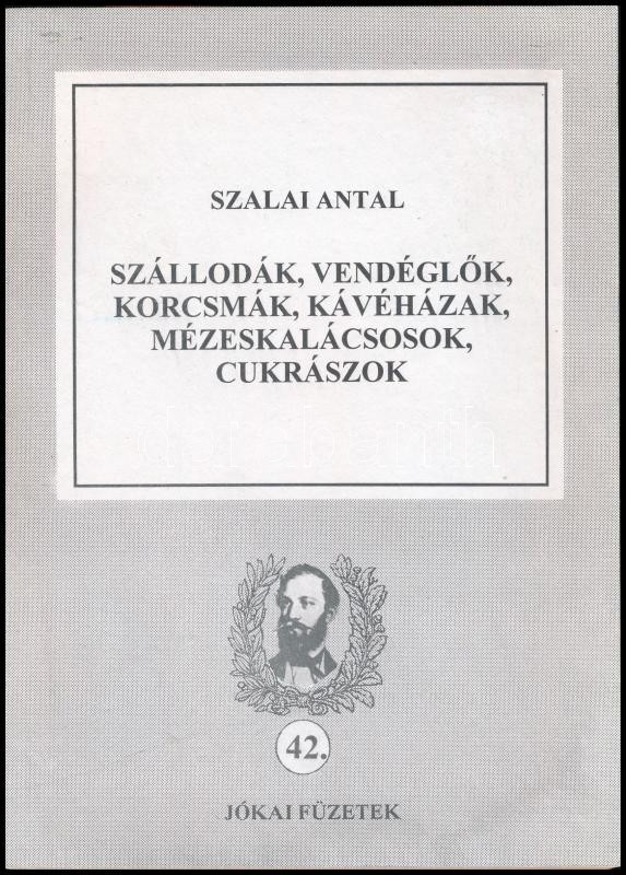 Leírás: Szalai Antal: Szállodák, vendéglők, korcsmák, kávéházak, mézeskalácsosok, cukrászok. Összeáll.: Szalai Antal. Jókai Füzetek. 2005. 42. Pápa, 2005., Jókai Mór Városi Könyvtár. Fekete-fehér fotókkal illusztrált. Kiadói papírkötés.