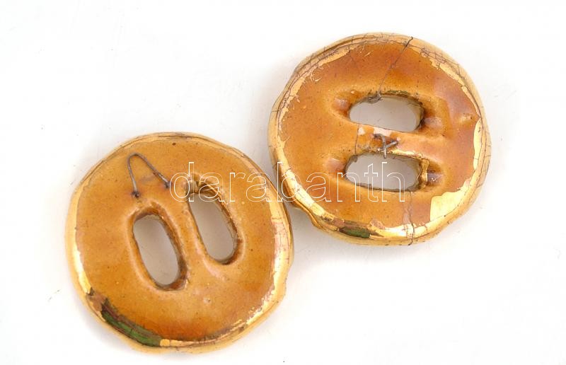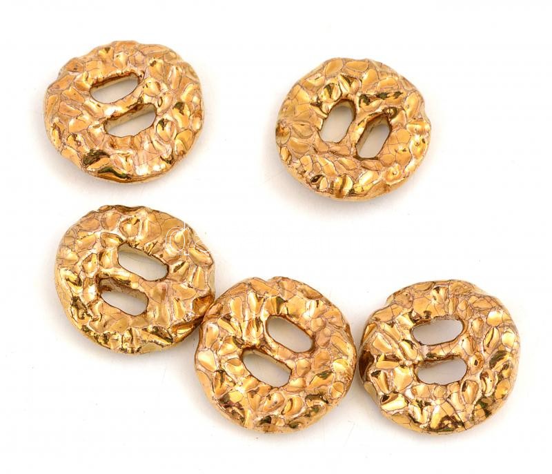 Leírás: 5 db régi kézműves kerámia gomb, arany színben, jó állapotban, d: 3 cm