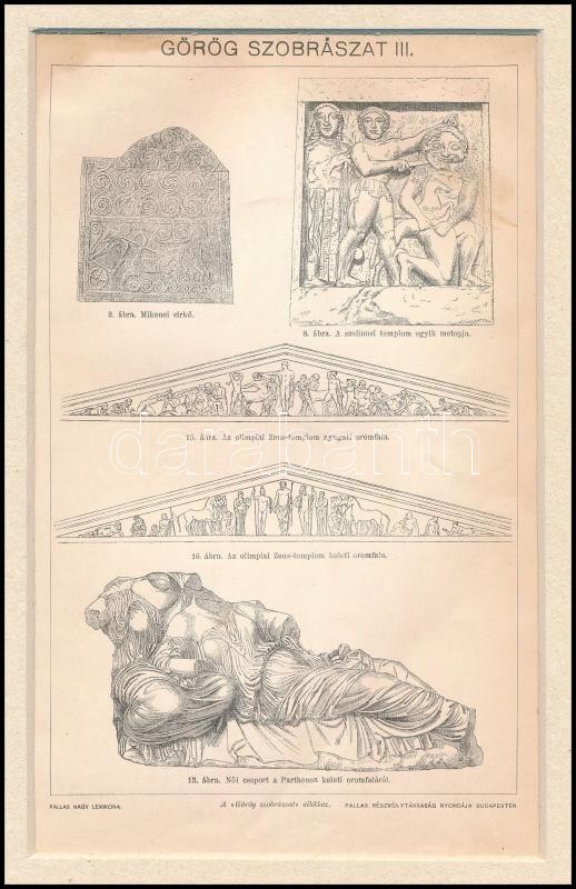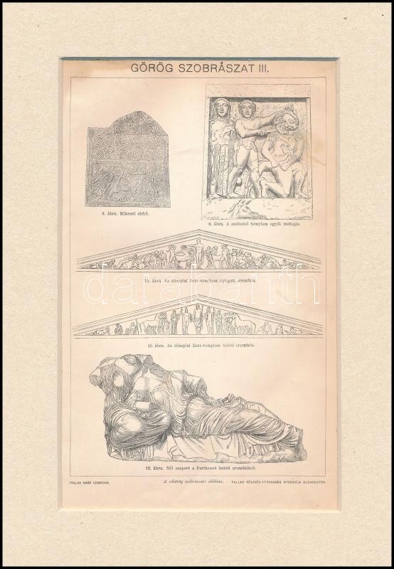 Leírás: cca 1898 Görög szobrászat III., Pallas Nagy Lexikon illusztrációja, paszpartuban, 23x14 cm